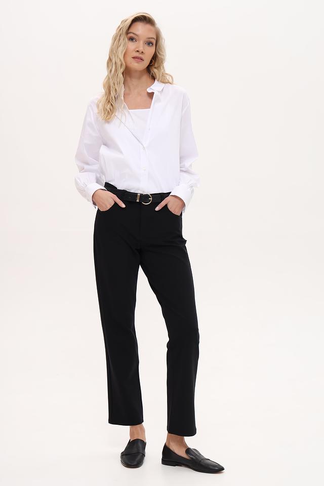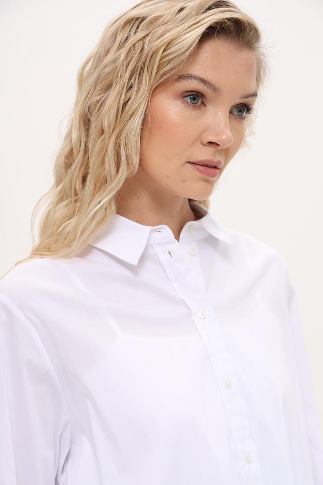 Рубашка имеет классический крой с длинными рукавами и отложным воротником. Застежка на пуговицы по всей длине. Прямой силуэт позволяет сочетать ее с различными стилями одежды – от деловых костюмов до повседневных образов.