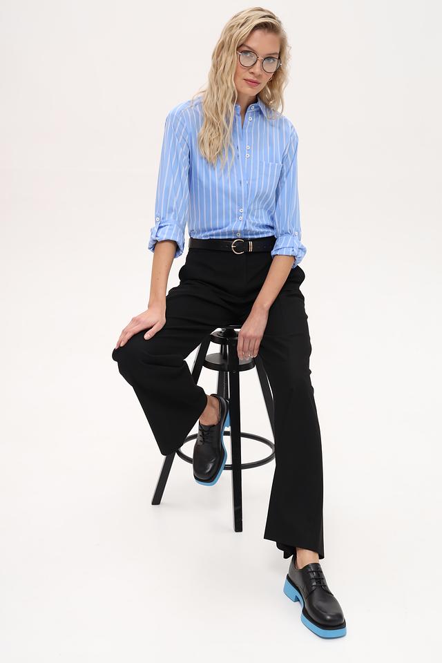 Брюки имеют стандартную посадку на талии, застежку на молнию и пуговицу. Боковые карманы добавляют функциональности. Данная модель идеально подходит для создания как деловых, так и повседневных образов.