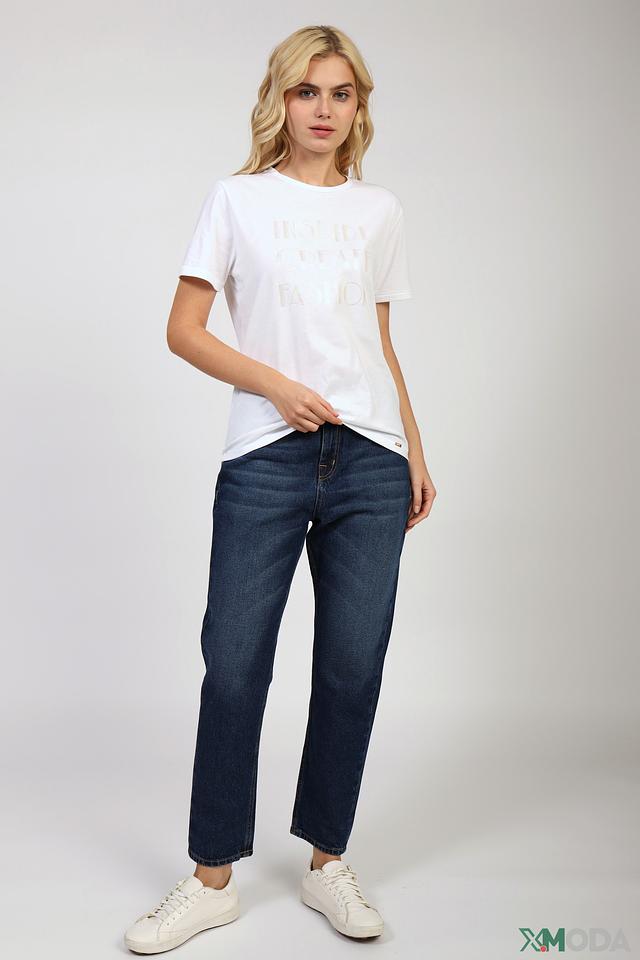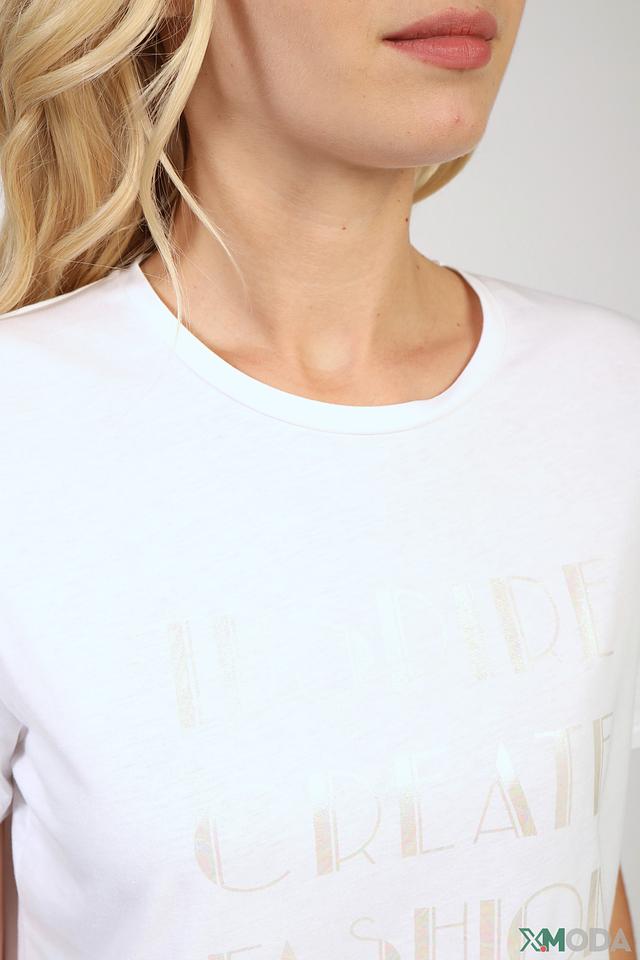 Женская футболка Cinque белого цвета с надписью "INSIDE CREATE FASHION". Модель выполнена из 100% хлопка, обеспечивая комфорт и воздухопроницаемость. Стильный принт делает эту футболку отличным выбором для повседневного образа. Состав: хлопок 100%