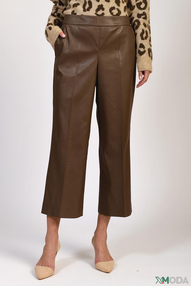 Брюки от Cinque коричневого цвета выполнены из высококачественной экокожи. Модель имеет прямую посадку и укороченный крой, что делает их стильным и современным решением для создания модных образов. Состав: полиэстер 100%
