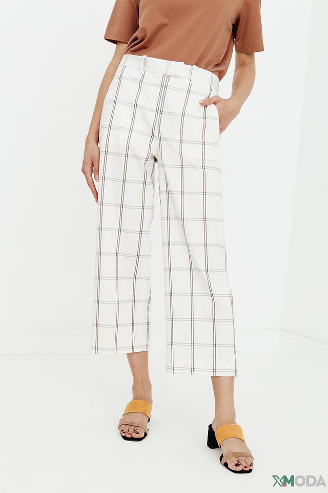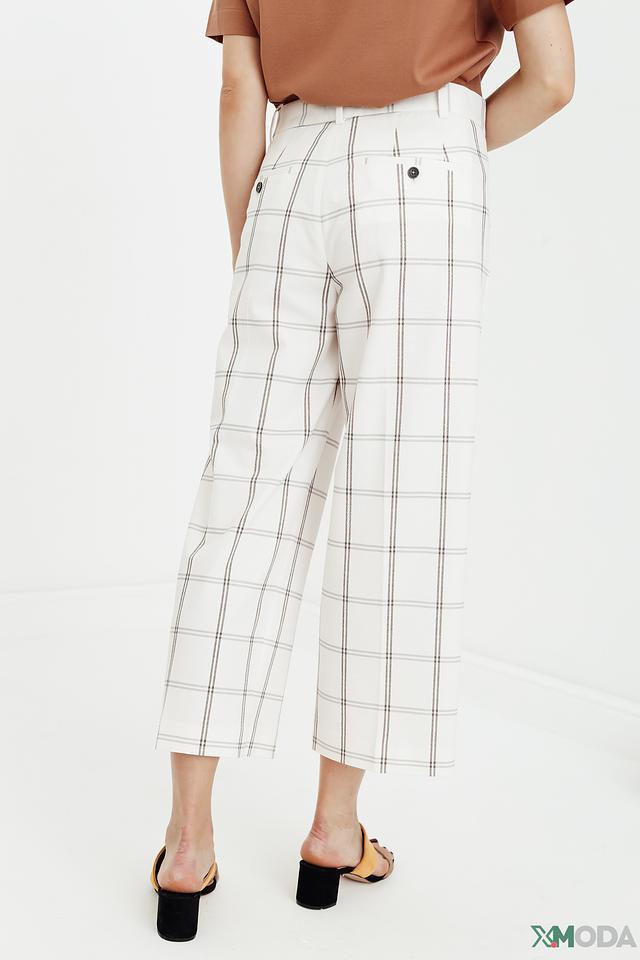 Представляем стильные брюки от Circolo 1901, выполненные в белом цвете с графичным рисунком в клетку. Эта модель станет отличным дополнением к вашему гардеробу, позволяя создавать разнообразные образы – от деловых до повседневных.