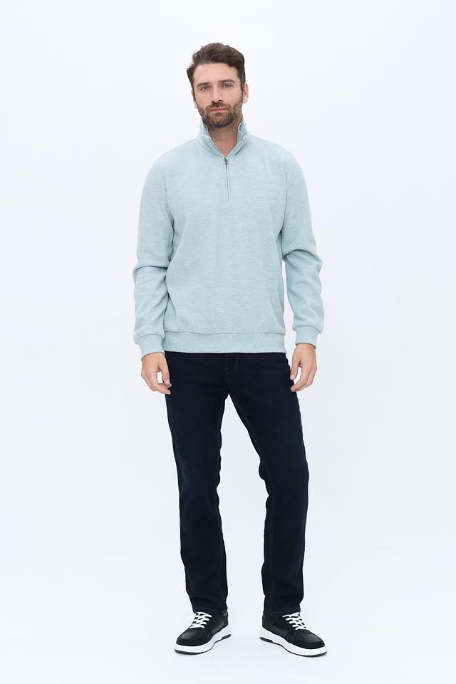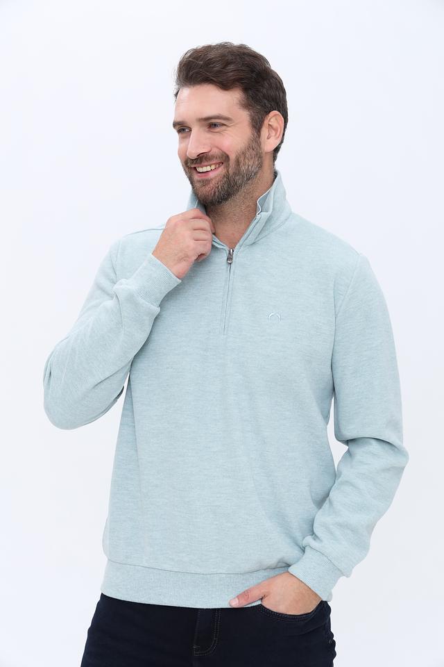 Мужской джемпер Claudio Campione голубого цвета с короткой молнией на горловине. Изготовлен из мягкого и приятного к телу сочетания хлопка и полиэстера, обеспечивающего комфорт и практичность. Состав: хлопок 65%, полиэстер 35%