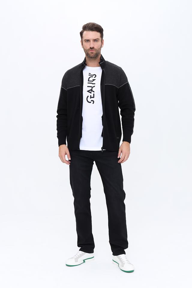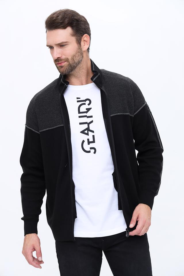 Представляем вашему вниманию мужской кардиган от бренда Claudio Campione. Эта модель выполнена в классическом чёрном цвете с акцентной серой вставкой на плечах и рукавах, что придает ей современный и стильный вид.