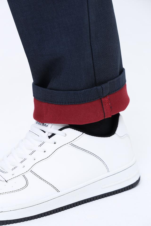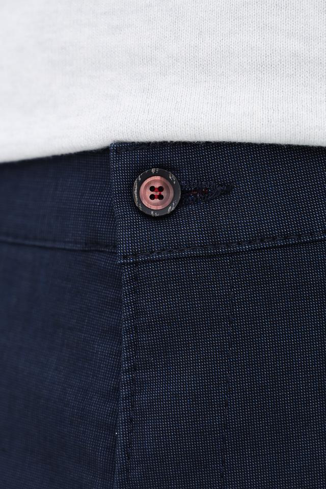 Цвет брюк – насыщенный темно-синий, который легко сочетается с различными элементами гардероба. Брюки имеют стандартную посадку на талии, застежку на молнию и пуговицу, а также функциональные карманы. Это отличный выбор для создания повседневных образов.