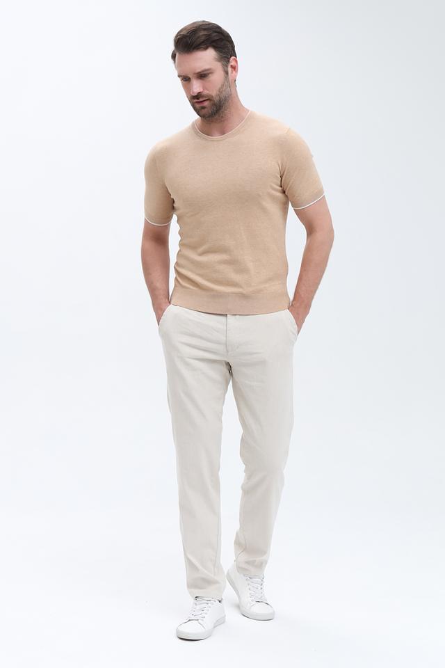 Бежевые брюки Club of comfort – это удобная и стильная модель с эластичным поясом и завязками. Брюки выполнены из смесовой ткани, сочетающей лен, полиэстер и эластан, что обеспечивает комфорт и практичность. Состав: лен 56%, полиэстер 41%, эластан 3%