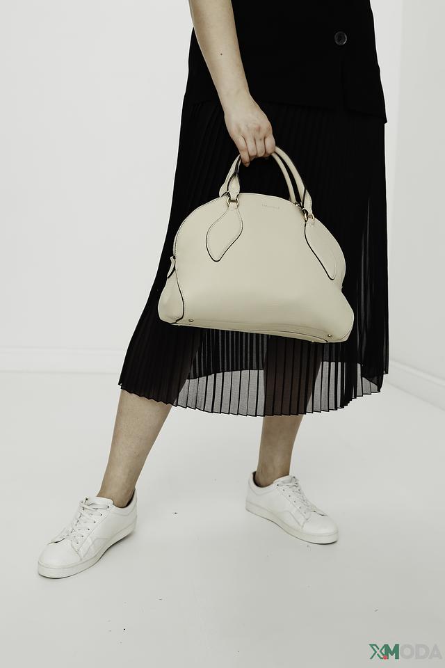 Модель оснащена двумя короткими ручками для ношения в руке и съемным плечевым ремнем, что позволяет носить сумку на плече или через плечо. Внутреннее пространство сумки достаточно вместительное для хранения необходимых вещей.