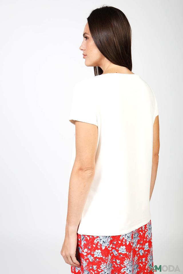 Модель имеет прямой крой, короткие рукава и круглый вырез горловины. Футболка изготовлена из высококачественного материала, состоящего из 47% хлопка, 47% модала и 6% эластана. Такое сочетание обеспечивает комфорт при носке, мягкость и хорошую посадку по фигуре.