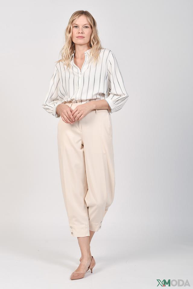 Представляем элегантные брюки-кюлоты от бренда Comma. Эта модель выполнена в нежном бежевом цвете, который легко сочетается с различными элементами гардероба.