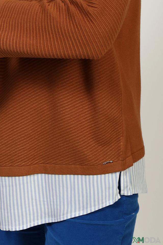 Коричневая блуза Comma с выраженной текстурой и рукавами 3/4 станет отличным дополнением к вашему гардеробу. Модель свободного кроя с округлым вырезом горловины, идеально сочетается с другими элементами одежды. Состав: вискоза 81%, полиамид 17%, эластан 2%