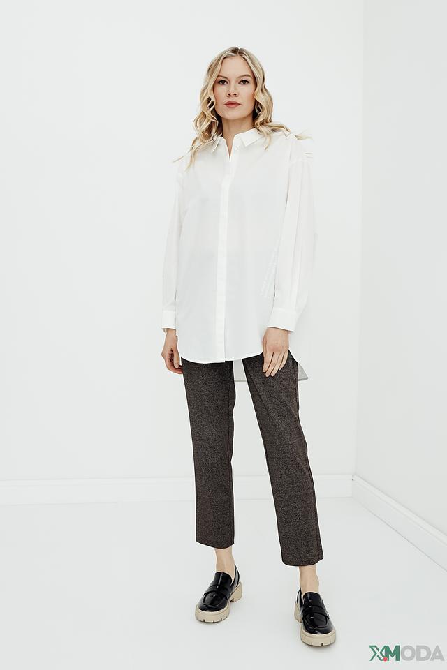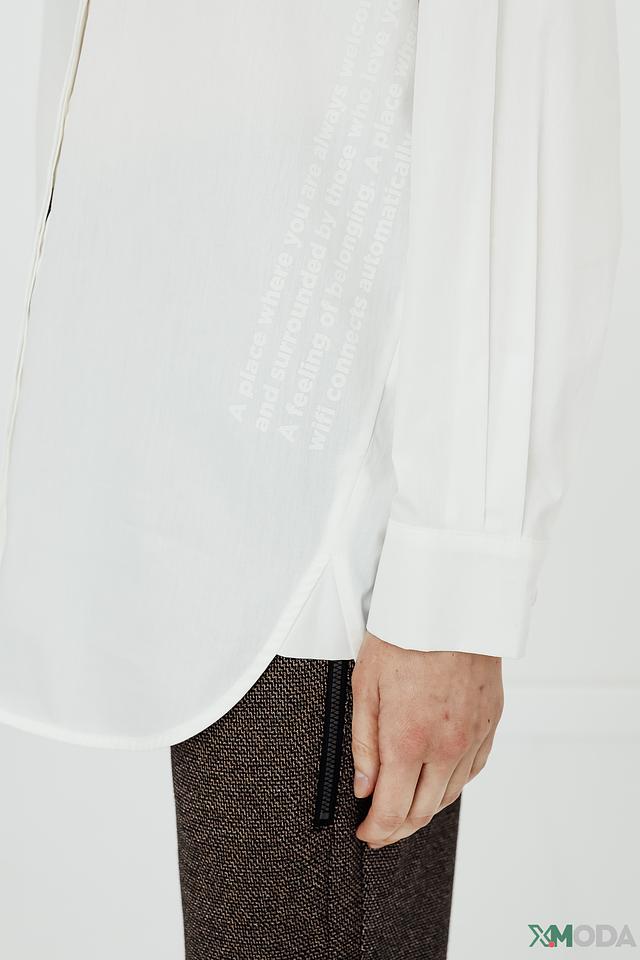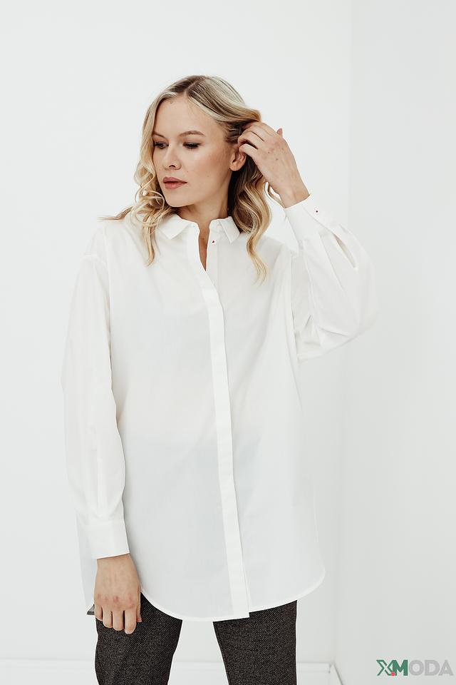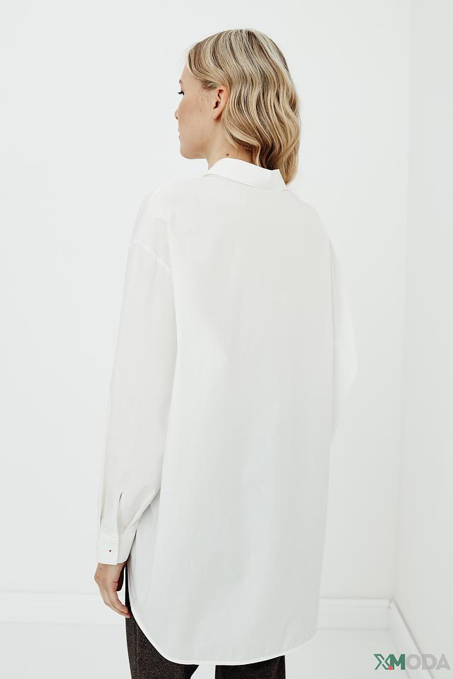 Рубашка имеет свободный, оверсайз крой, который позволяет создать расслабленный и стильный образ. Классический воротник и застёжка на пуговицы придают ей элегантность, а длинные рукава с манжетами делают её универсальной для любого времени года.