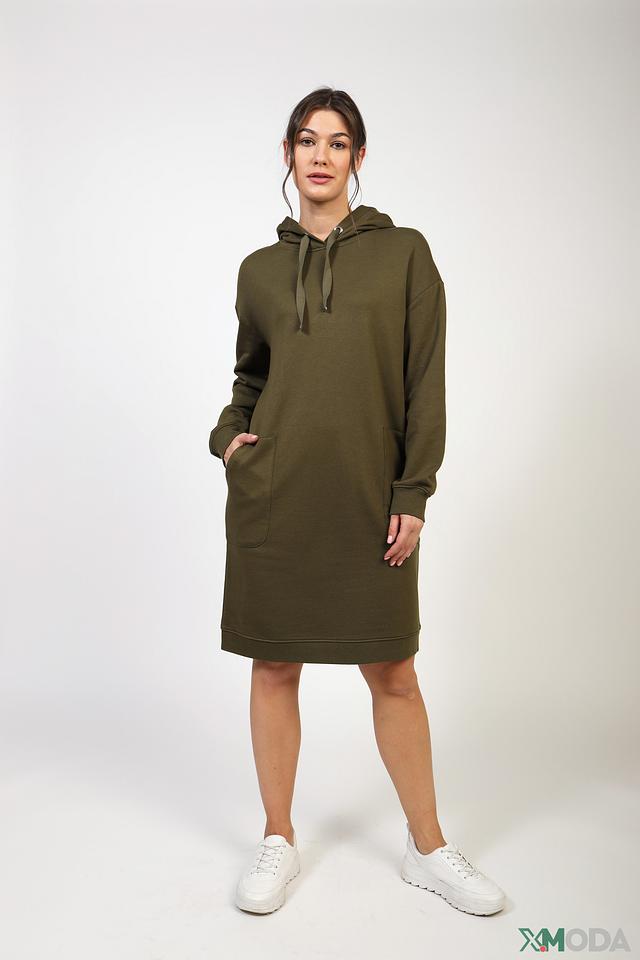 Платье Comma цвета хаки – это удобная и стильная модель оверсайз с капюшоном и карманом. Идеальный выбор для создания повседневного образа в стиле casual. Изготовлено из мягкого хлопка с добавлением модала. Состав: хлопок 67%, модал 33%