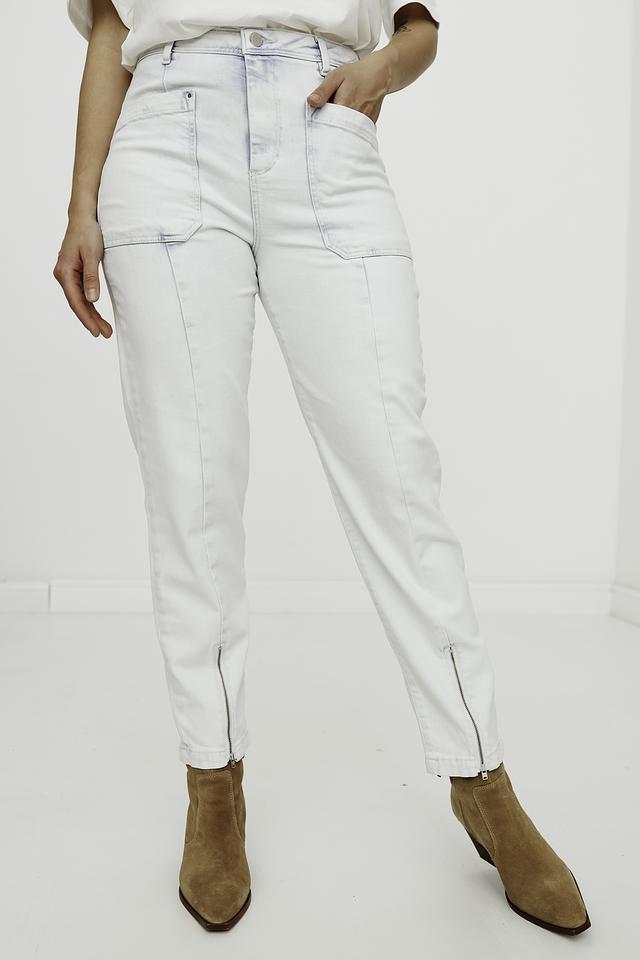 Особенностью этих джинсов являются накладные карманы на бедрах, добавляющие им функциональности и современного вида. Застежка на молнию и пуговицу в поясе обеспечивает надежную фиксацию. На щиколотках предусмотрены молнии, которые позволяют регулировать ширину штанин и создавать различные образы.
