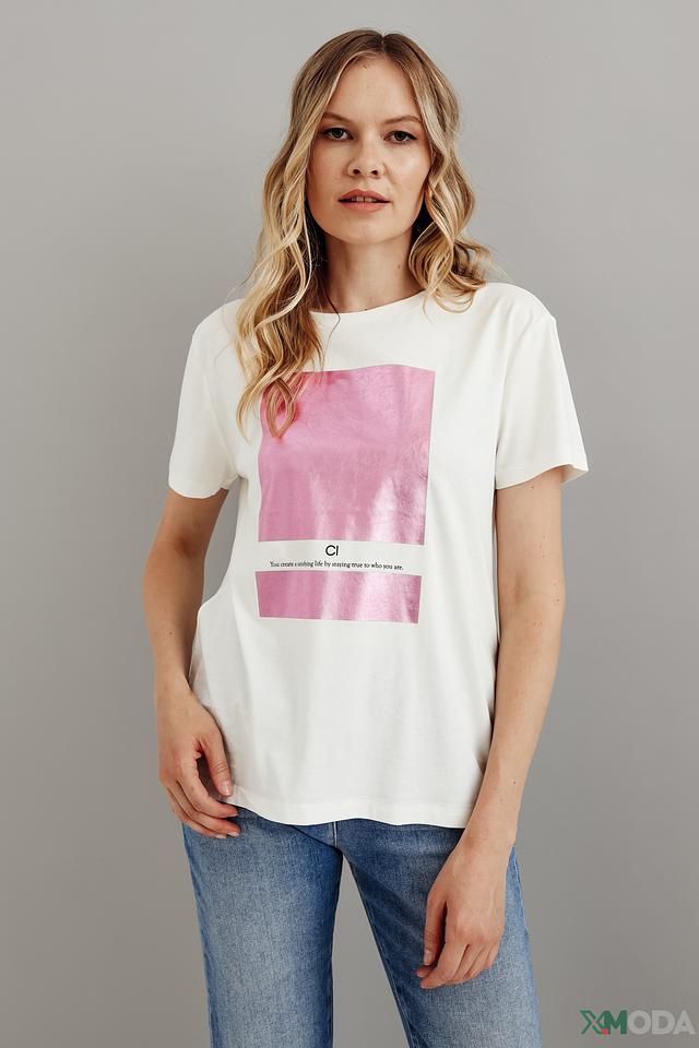 Футболка Comma с розовым принтом