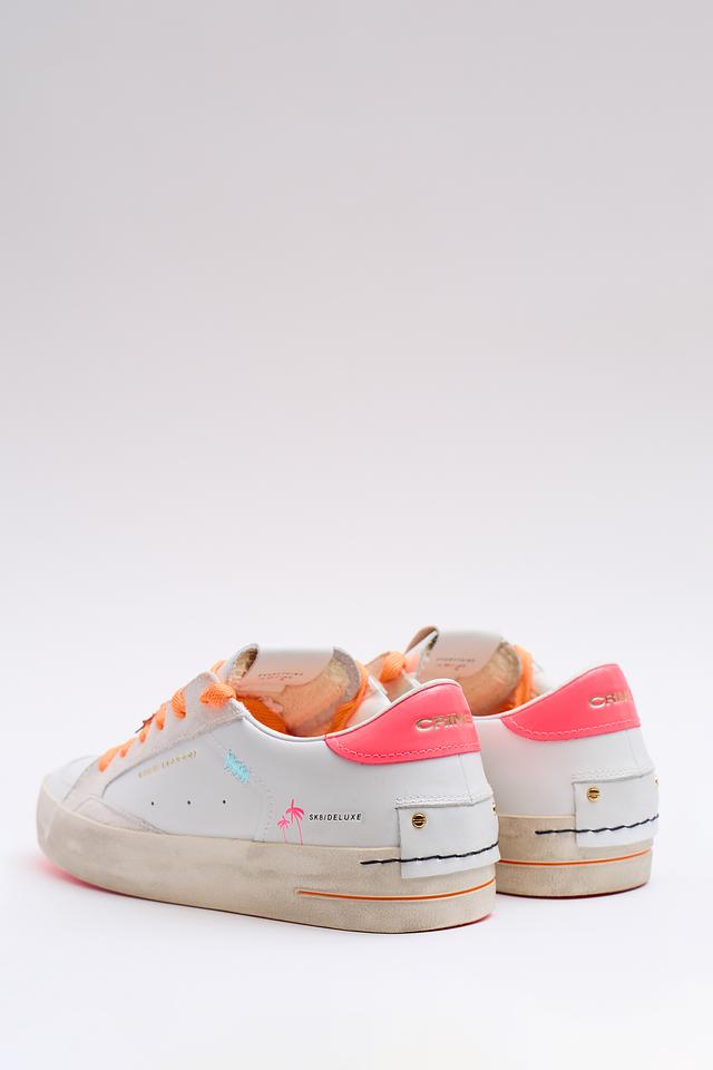 Белые кроссовки Crime London Skate Deluxe – это стильная и удобная обувь для повседневной носки. Модель выполнена из кожи и дополнена яркими оранжевыми шнурками и декоративными элементами в виде пальм. Состав: Состав_низ резина 100%, кожа 99%, Состав_подкладка кожа 50%, Состав_подкладка текстиль 50%, текстиль 0%
