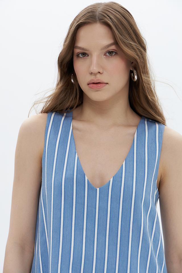 Платье Croche голубого цвета в вертикальную полоску – стильное и комфортное решение для летнего гардероба. Изготовлено из смесового хлопка с добавлением вискозы и полиэстера, обеспечивающего приятные тактильные ощущения и практичность. Состав: хлопок 37%, вискоза 25%, полиэстер 25%, полиамид 10%, эластан 3%