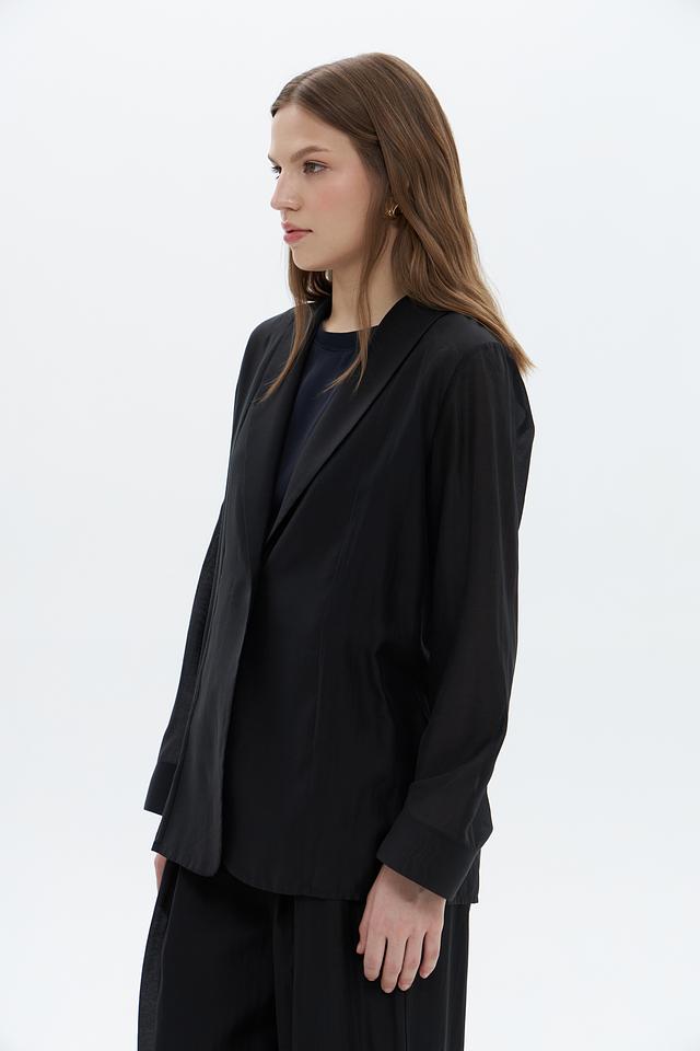 Чёрный жакет Croche оверсайз кроя станет стильным дополнением к вашему гардеробу. Модель выполнена из лёгкой ткани на основе лиоцела, что обеспечивает комфорт в носке. Жакет имеет лаконичный дизайн с классическим отложным воротником. Состав: лиоцел 85%, полиэстер 15%