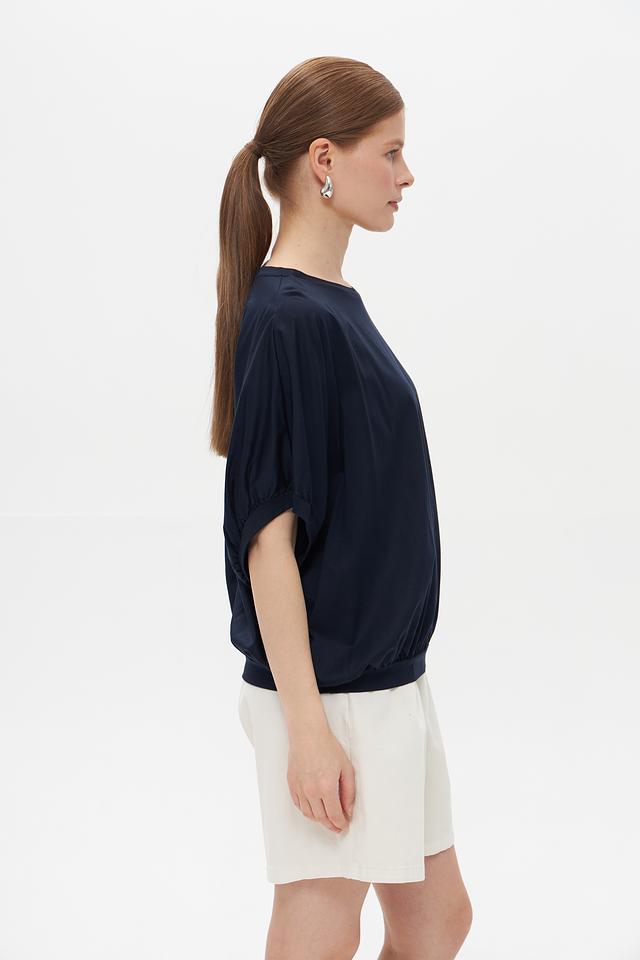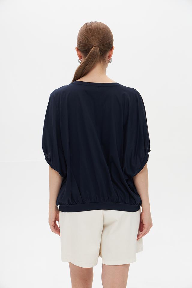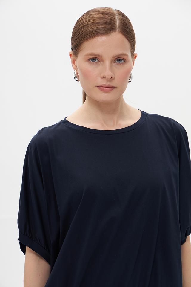 Тёмно-синяя футболка Croche с рукавом-фонарик и округлым вырезом горловины. Изготовлена из мягкого и приятного к телу сочетания хлопка и модала, обеспечивающего комфорт в течение всего дня. Стильный и лаконичный дизайн. Состав: хлопок 50%, модал 50%