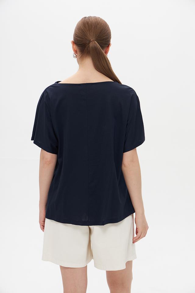 Темно-синяя футболка Croche с драпировкой на плечах – стильное и комфортное решение для повседневного образа. Изготовлена из мягкого хлопка с модалом, обеспечивающего приятные ощущения на коже. Состав: хлопок 50%, модал 50%
