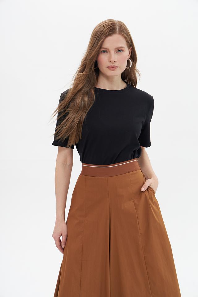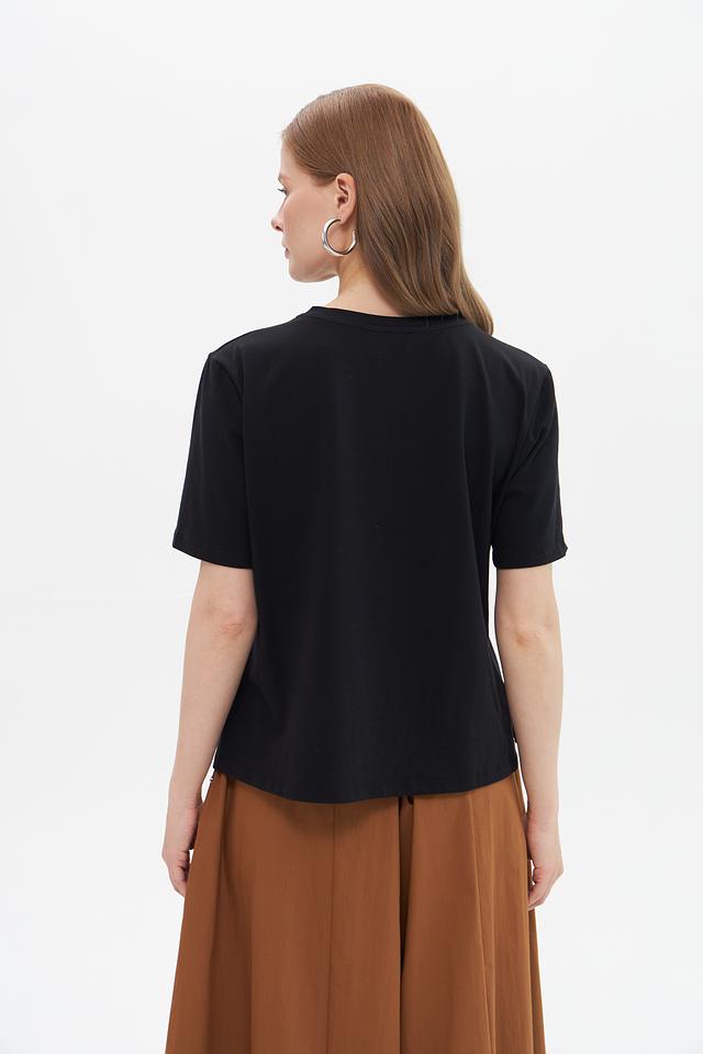 Женская футболка от бренда Croche, выполненная в классическом черном цвете. Модель имеет прямой, слегка свободный крой, который обеспечивает комфортную посадку по фигуре.