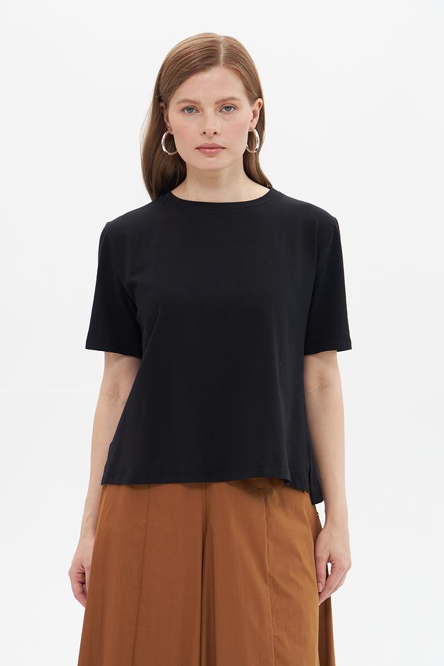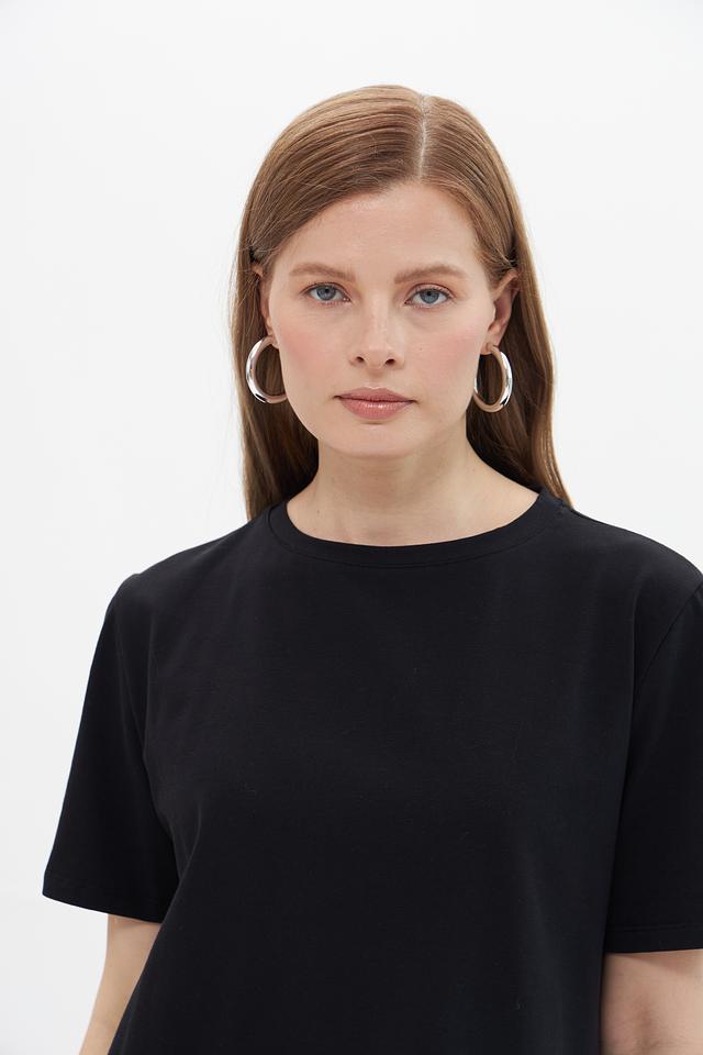 Чёрная футболка Croche прямого кроя из хлопка с эластаном. Модель с короткими рукавами и небольшим разрезом по бокам. Состав: 95% хлопок, 5% эластан. Состав: хлопок 95%, эластан 5%