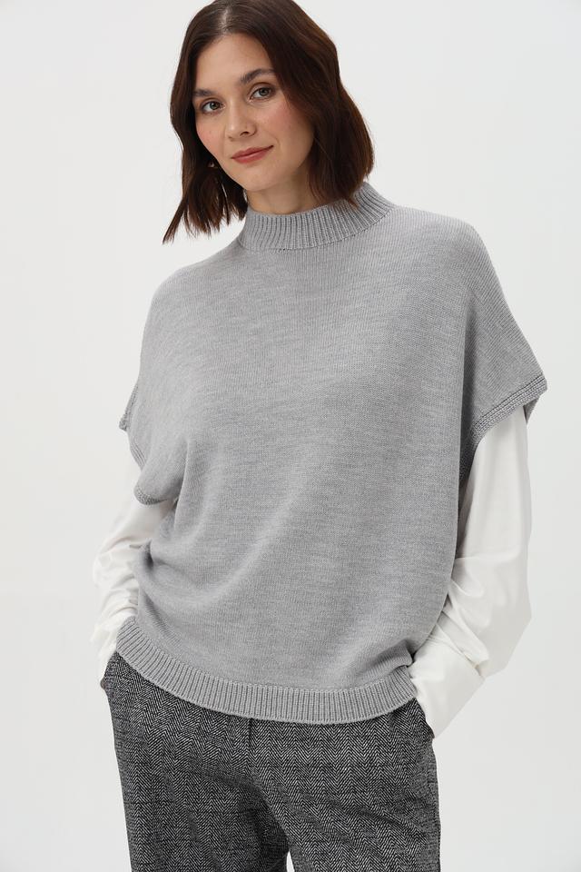 Серый вязаный жилет Croche с высоким воротом станет отличным дополнением к вашему гардеробу. Изделие выполнено из мягкого трикотажа, что обеспечивает комфорт в носке. Состав: шерсть 100%
