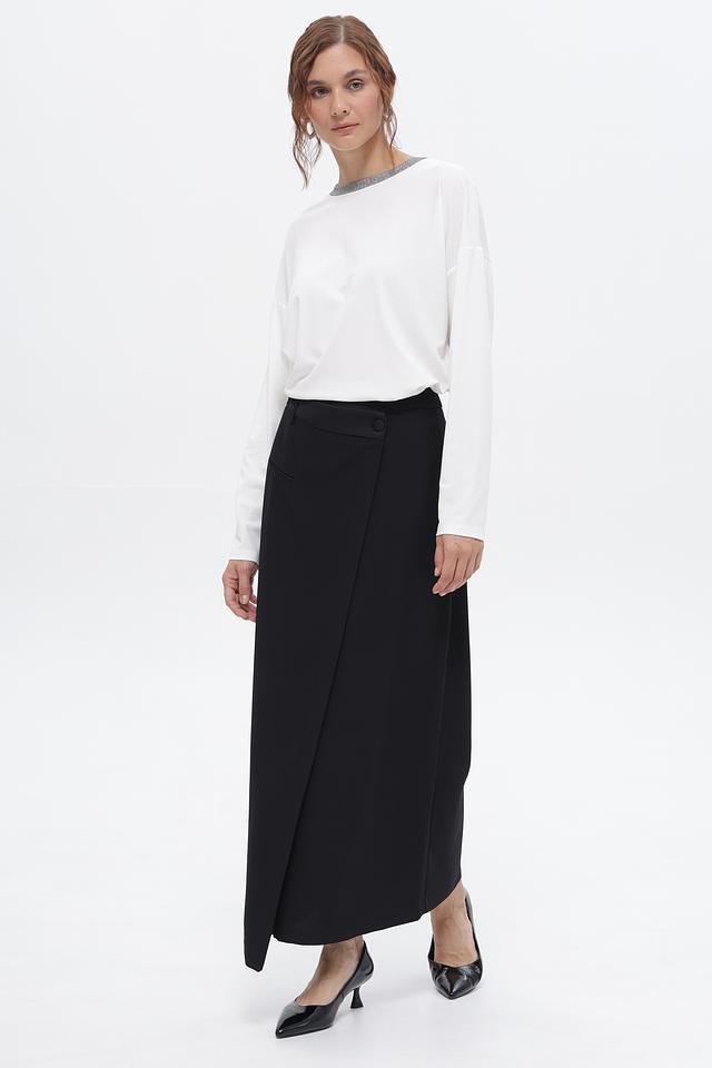 Черная юбка от Croche длиной миди с асимметричным запахом и пуговицей на талии. Модель выполнена из 100% полиэстера, обеспечивающего комфорт и практичность. Состав: полиэстер 100%
