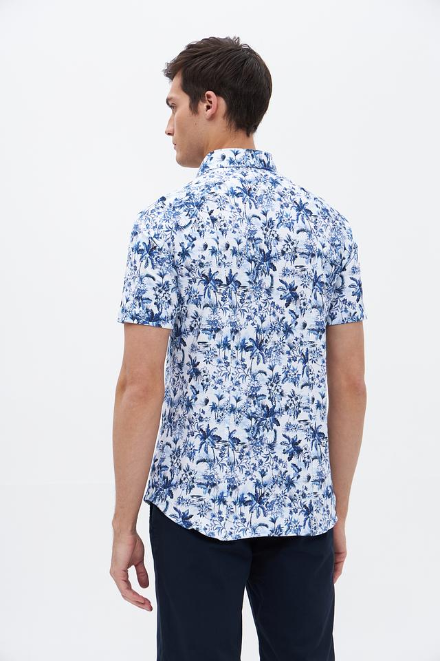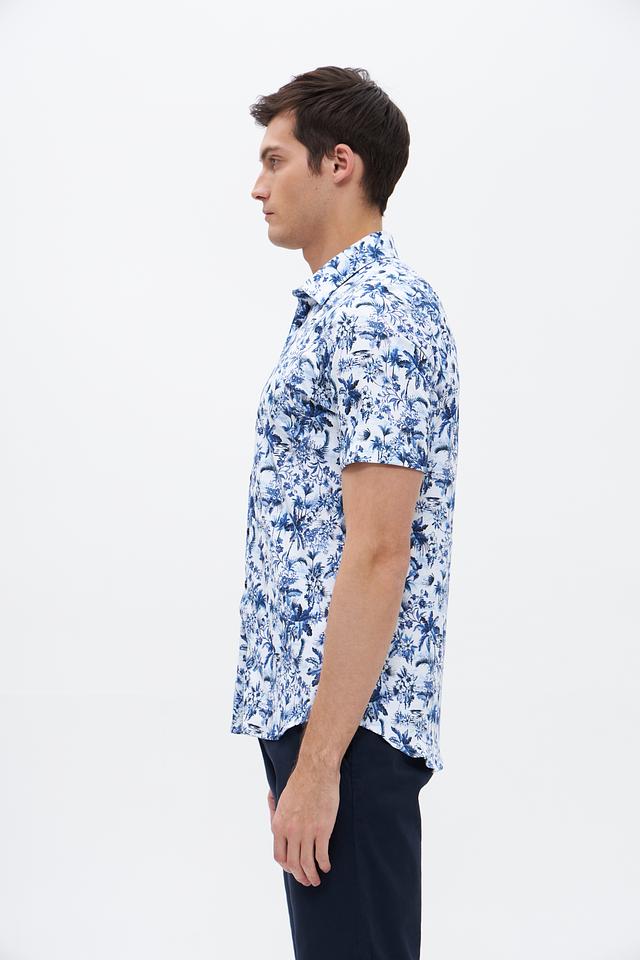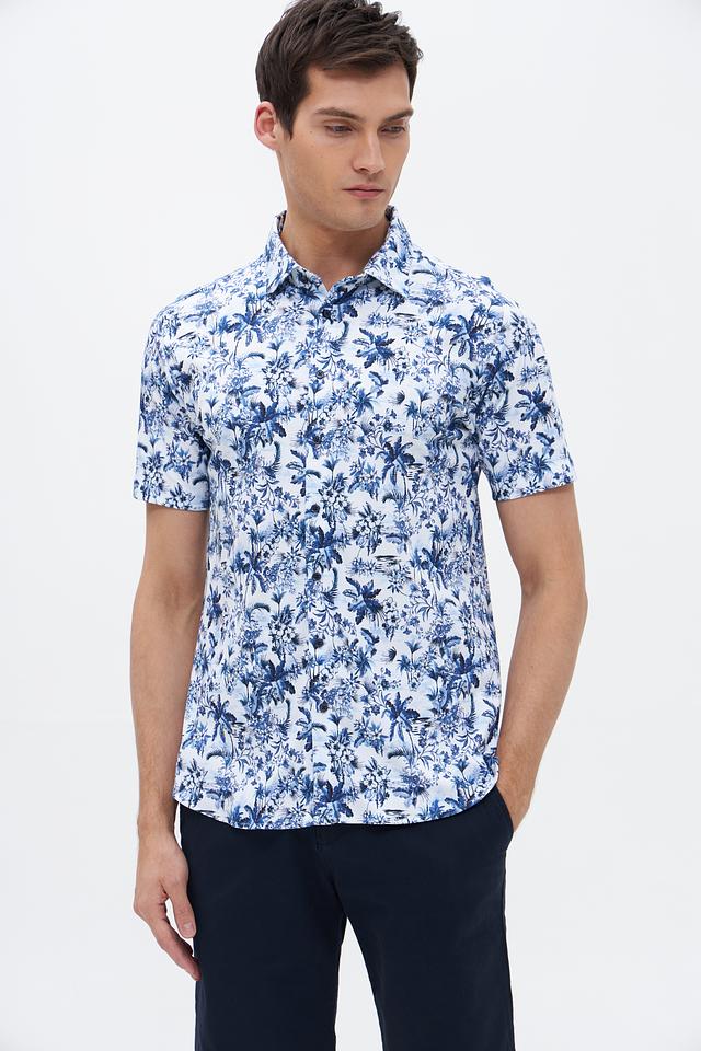 Мужская рубашка Desoto короткий рукав, голубого цвета, с ярким цветочным принтом. Изготовлена из 100% хлопка, обеспечивающего комфорт и воздухопроницаемость. Идеальный выбор для создания стильного летнего образа. Состав: хлопок 100%