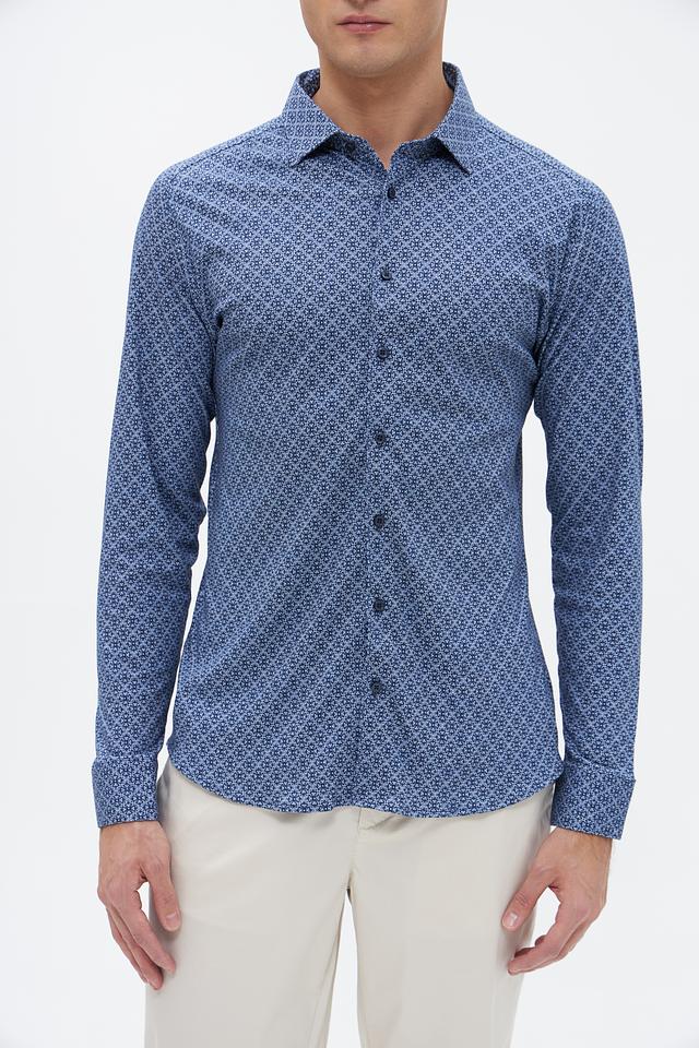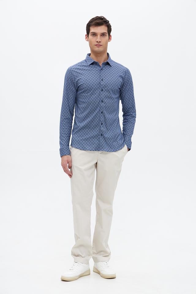 Мужская рубашка Desoto голубого цвета с геометрическим принтом. Изготовлена из 100% хлопка, обеспечивающего комфорт и воздухопроницаемость. Отличный выбор для создания стильного повседневного образа. Состав: хлопок 100%