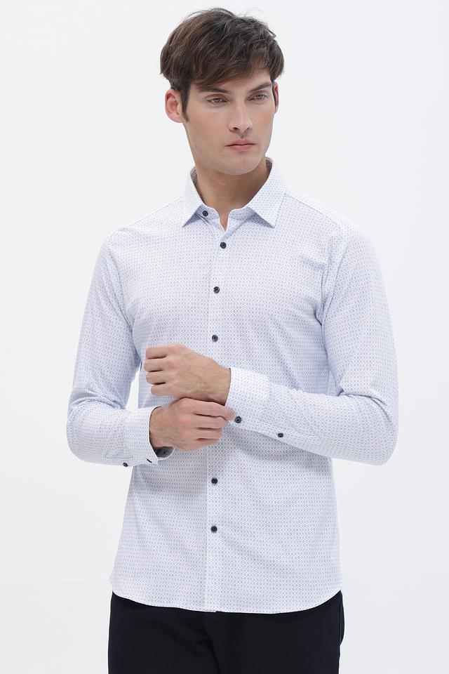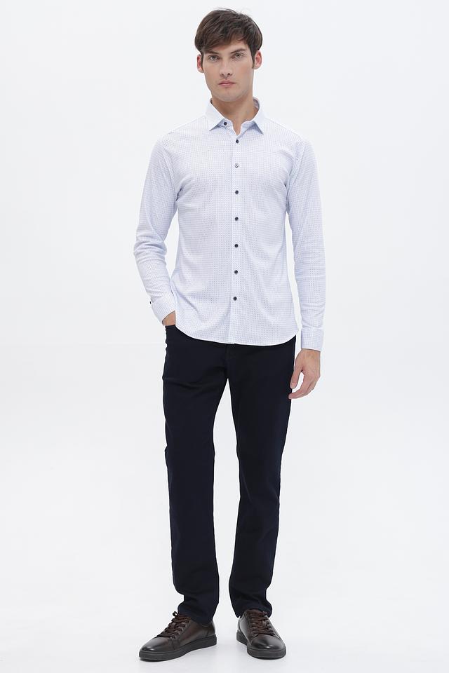 Мужская рубашка Desoto голубого цвета с мелким геометрическим принтом. Классический крой и 100% хлопковый состав обеспечивают комфорт и удобство в носке. Состав: хлопок 100%