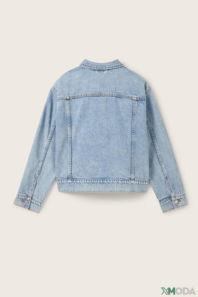 Классический джинсовый крой с отложным воротником и застежкой на металлические пуговицы. На груди расположены два накладных кармана с клапанами и металлическими кнопками. Рукава куртки имеют манжеты на пуговицах.