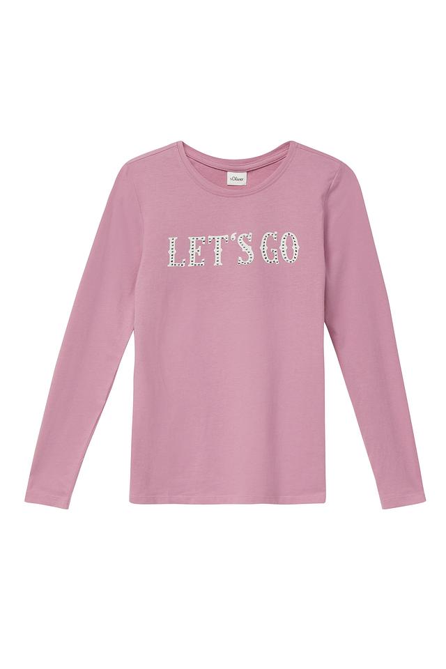 Футболка s.Oliver для девочки светло-розового цвета с длинным рукавом и надписью "LET'S GO". Изготовлена из 100% хлопка, обеспечивающего комфорт и удобство в носке. Состав: хлопок 100%