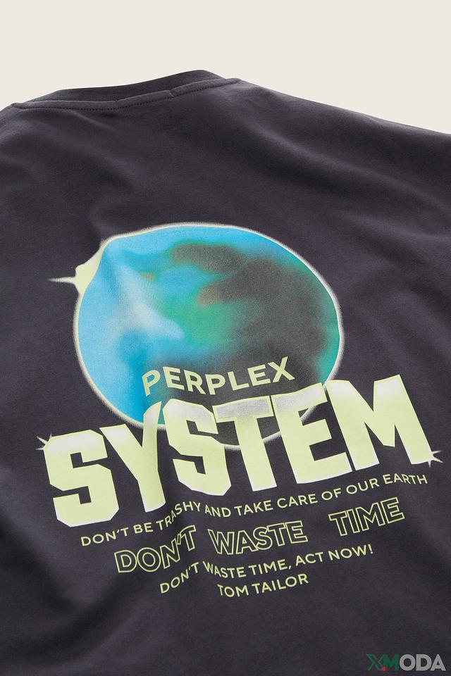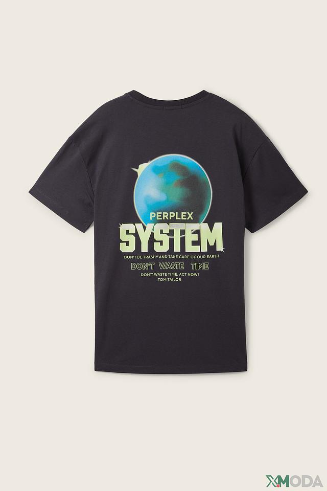 Чёрная футболка Tom Tailor для мальчиков с ярким принтом на спине. Изготовлена из 100% хлопка, обеспечивающего комфорт и воздухопроницаемость. Состав: хлопок 100%