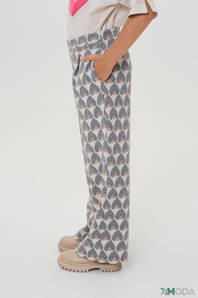 Представляем детские брюки от бренда Choupette. Эта модель выполнена в сером цвете и украшена очаровательным принтом в виде сердечек, что делает их особенно привлекательными для юных модниц.