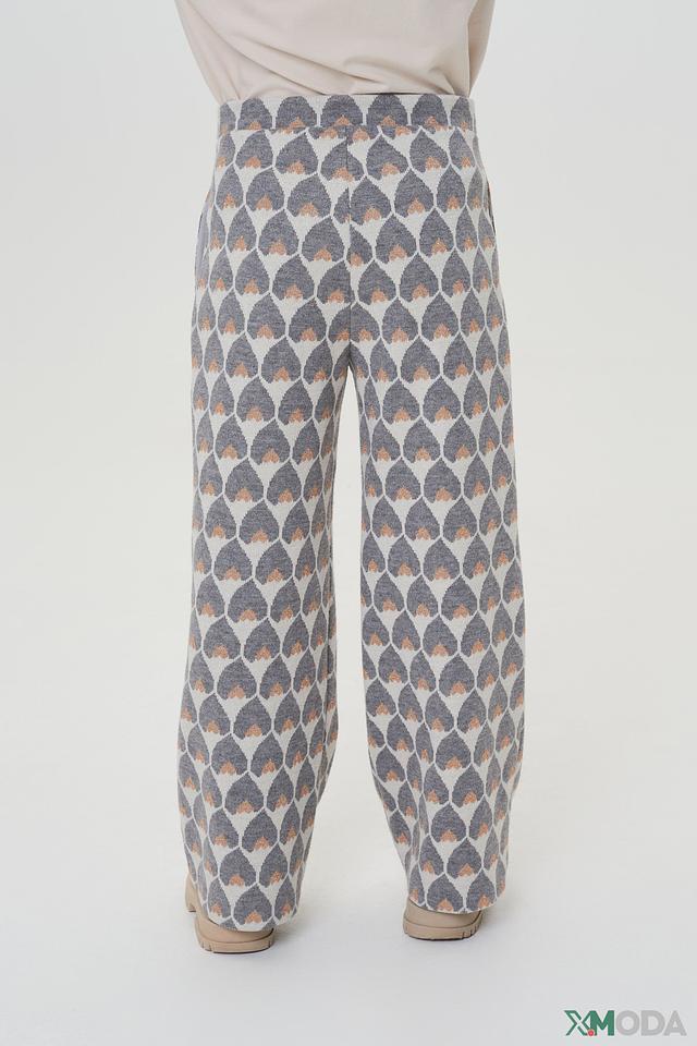 Брюки имеют удобный крой с эластичным поясом и широкими штанинами, обеспечивающими комфорт при носке и свободу движений. Особенности кроя включают в себя складки, добавляющие брюкам более аккуратный и стильный вид.