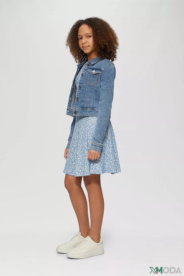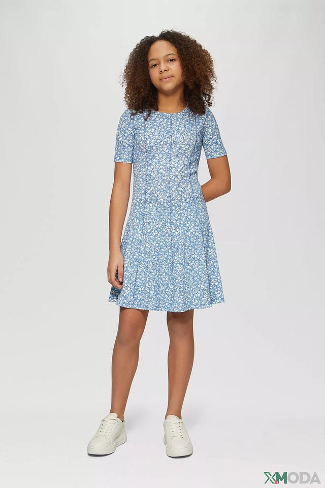 Платье s.Oliver для девочки, голубого цвета, с нежным цветочным принтом. Легкое и комфортное платье из хлопка с добавлением эластана идеально подойдет для повседневной носки и активных игр. Состав: хлопок 95%, эластан 5%