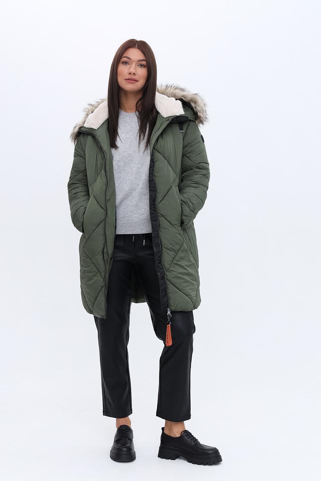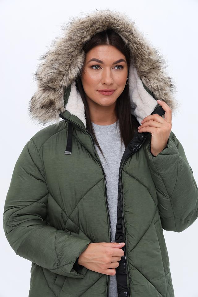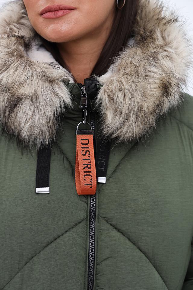 Стеганая куртка District цвета хаки – это стильная и теплая модель для прохладной погоды. Куртка имеет удобный капюшон с отделкой искусственным мехом и застегивается на молнию. Состав: полиамид 100%