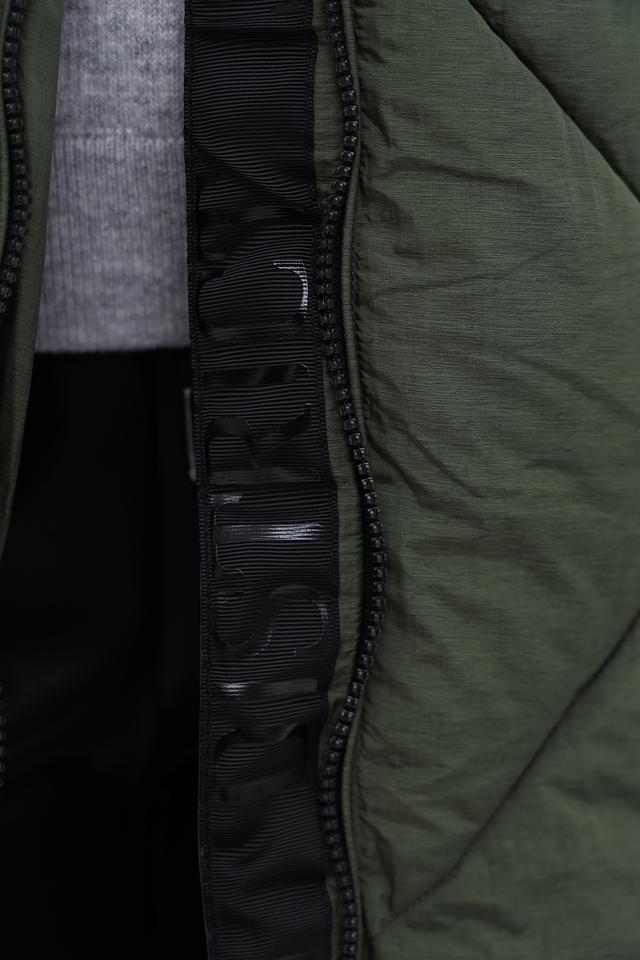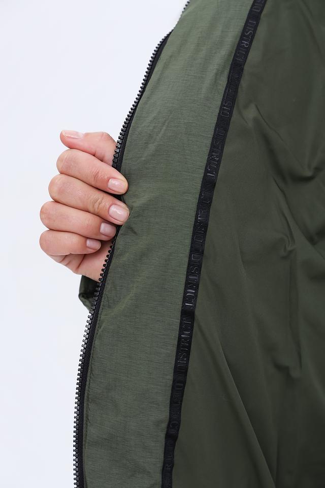 Эта куртка от бренда District станет отличным дополнением к вашему гардеробу. Модель выполнена в практичном цвете хаки и имеет стеганую фактуру.
