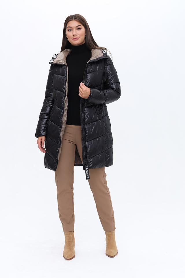 Пальто District стеганое чёрно-бежевое