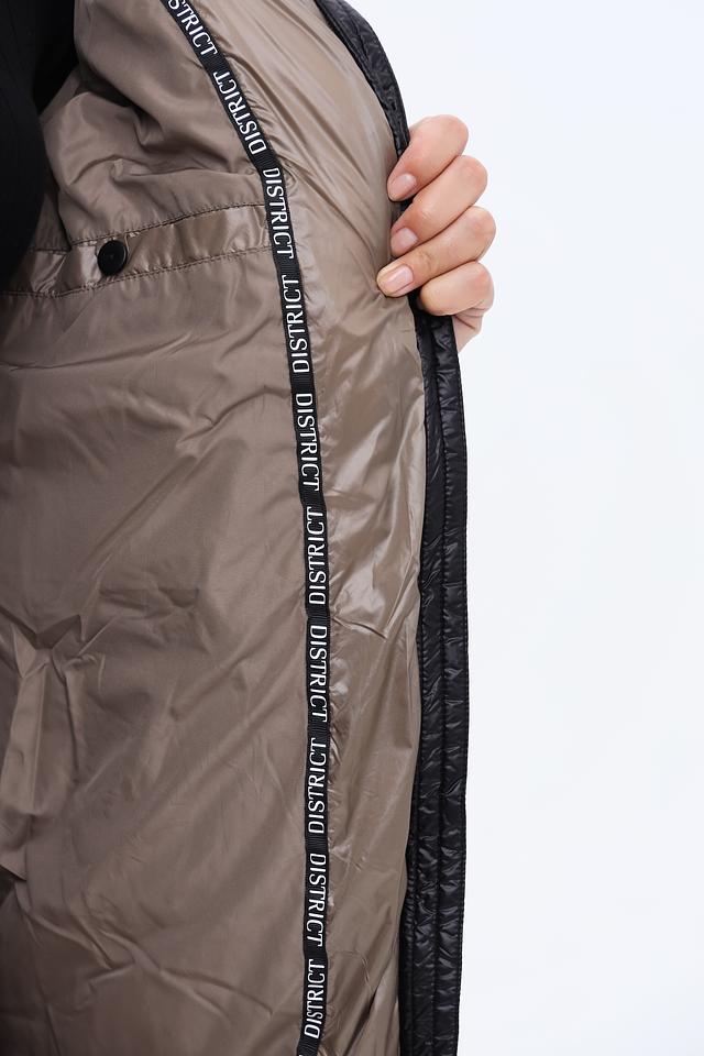 Пальто District – это современное решение для создания стильного и комфортного образа в холодное время года. Данная модель выполнена в сочетании чёрного и бежевого цветов, что делает её универсальной и подходящей к различным элементам гардероба.
