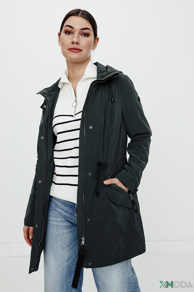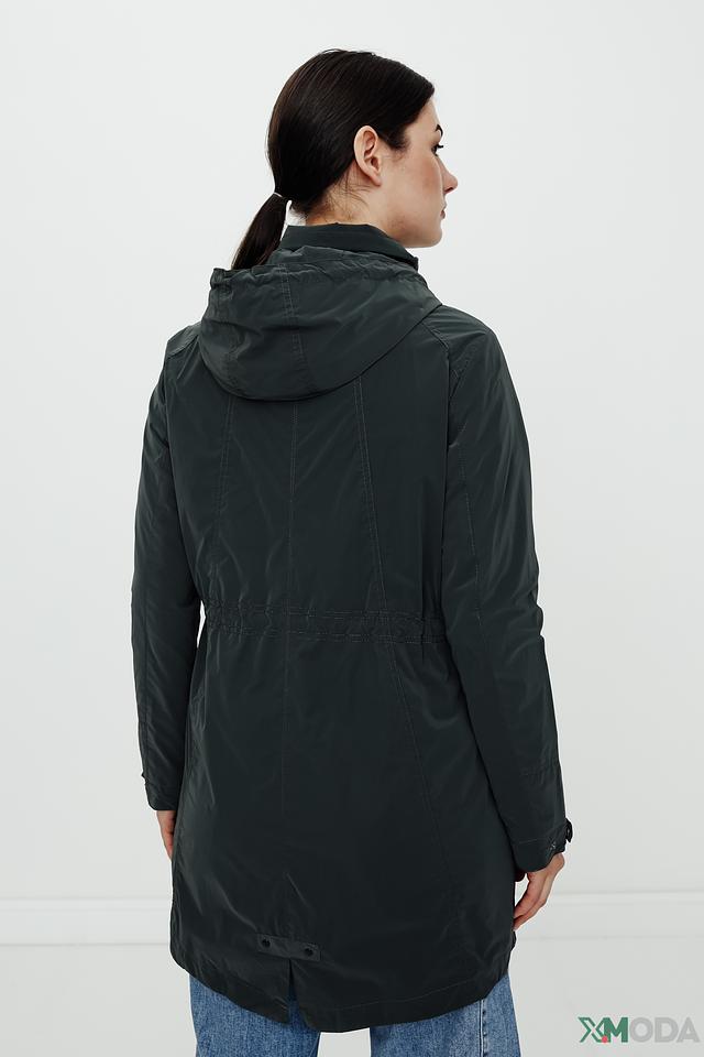 Куртка имеет удобный капюшон, который защитит от ветра и дождя. Застежка-молния обеспечивает надежную фиксацию, а регулируемые шнурки на талии позволяют создать силуэт по фигуре.