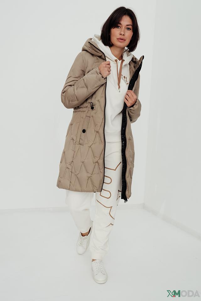 Модель имеет стеганую фактуру, которая придает ей особый шарм и обеспечивает дополнительную теплоизоляцию. Пальто оснащено удобным капюшоном, который защитит от непогоды, а застежка-молния позволяет легко регулировать степень тепла.