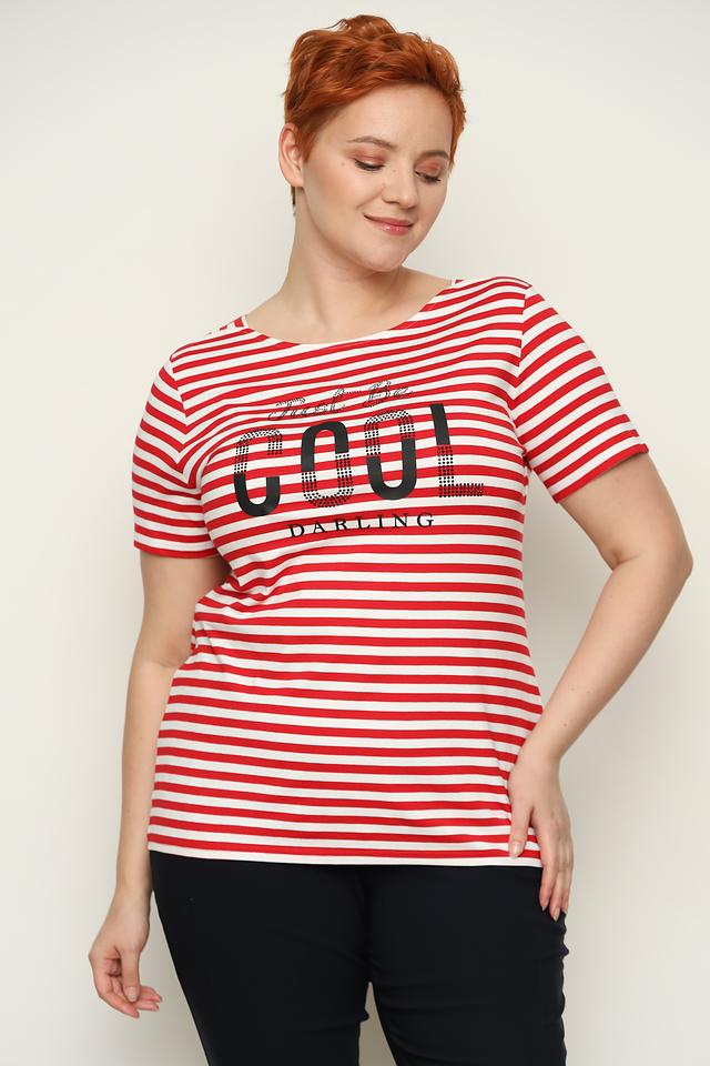 Женская футболка Doris Streich красного цвета в белую полоску с ярким принтом "You Darling". Модель выполнена из мягкой вискозы с добавлением эластана, обеспечивающего комфортную посадку. Состав: вискоза 92%, эластан 8%