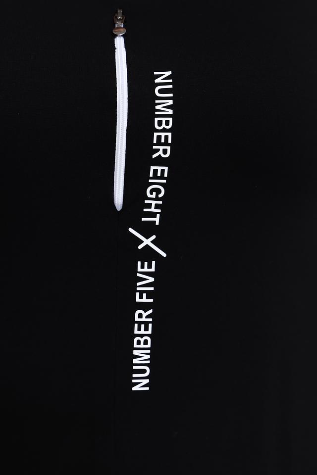 Особенностью модели является асимметричный низ, который придает ей оригинальность и динамичность. Вертикальный белый принт с надписью добавляет акцент и визуально вытягивает силуэт.