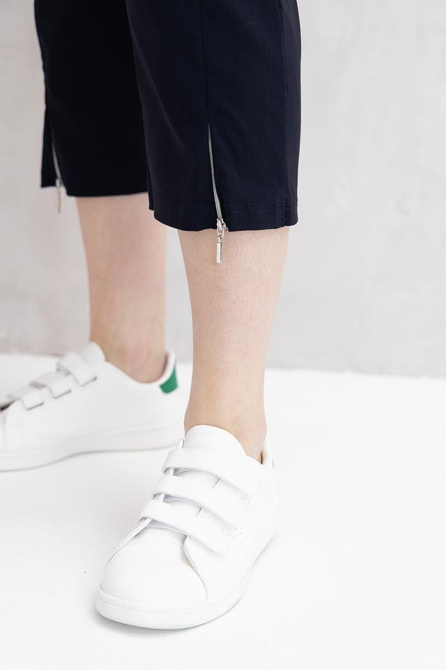 Особенностью данной модели является укороченный крой и наличие молнии на щиколотке с обеих сторон. Это придает брюкам оригинальный вид и позволяет регулировать ширину штанины. Брюки идеально подойдут для создания модных и практичных образов на каждый день.