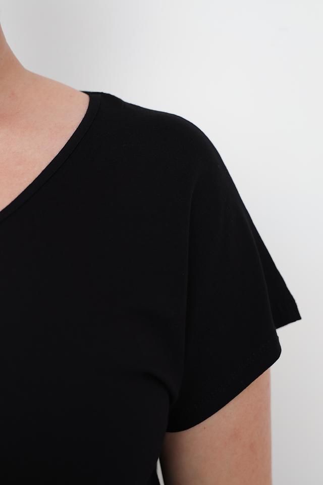 Чёрная футболка от Doris Streich с асимметричным низом. Изготовлена из мягкой вискозы с добавлением эластана для комфорта и свободы движений. Стильный и лаконичный дизайн. Состав: вискоза 96%, эластан 4%