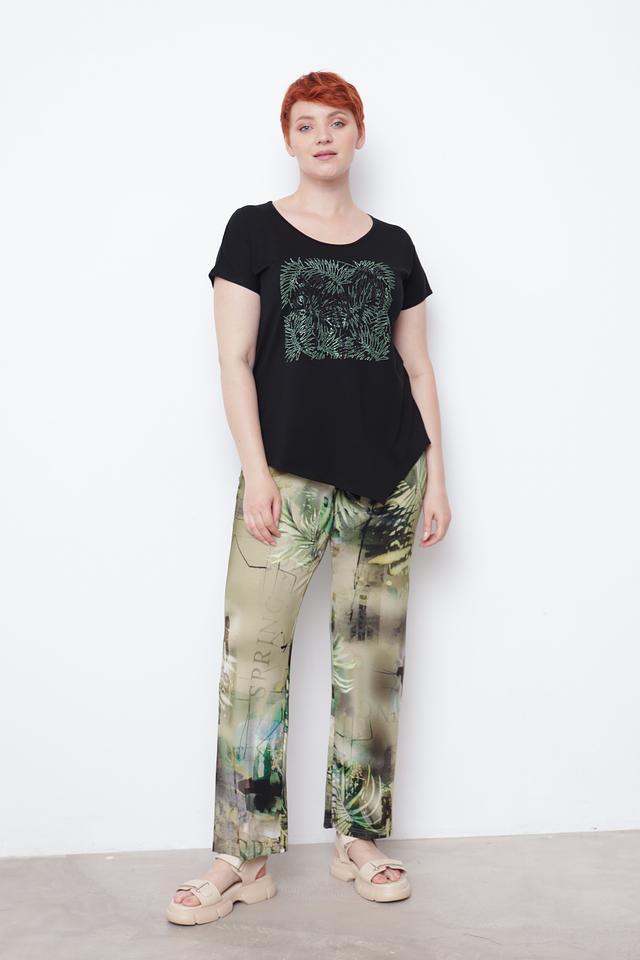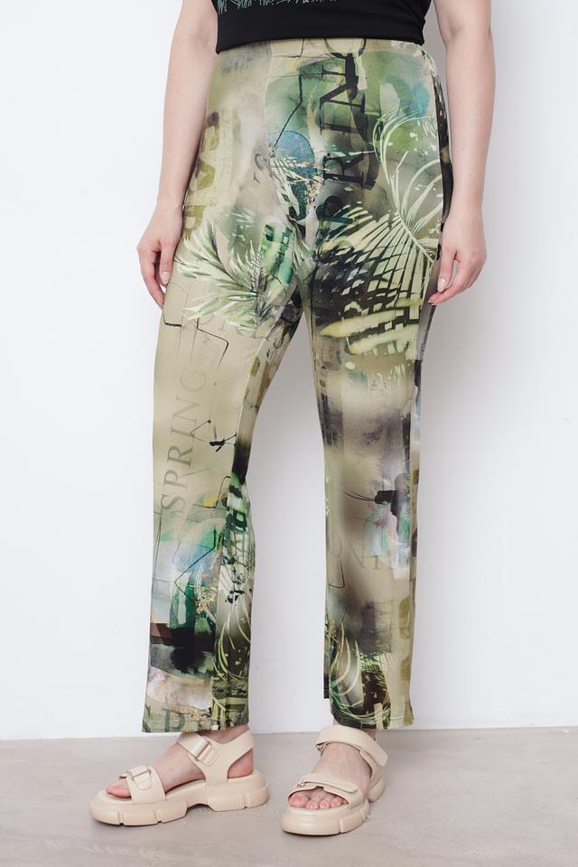Женские брюки Doris Streich зеленого цвета с ярким цветочным принтом станут стильным дополнением к вашему гардеробу. Модель выполнена из мягкой вискозы с добавлением эластана, обеспечивающего комфорт при носке. Состав: вискоза 96%, эластан 4%
