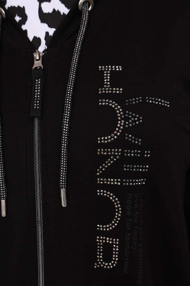 Чёрный кардиган от Doris Streich – стильная и комфортная модель на молнии с декоративной отделкой. Изготовлен из мягкой вискозы с добавлением эластана для удобства носки и сохранения формы. Состав: вискоза 95%, эластан 5%