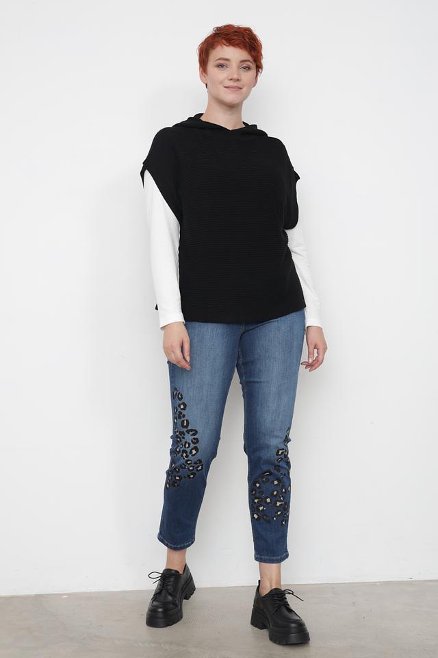Чёрный жилет от Doris Streich – это стильный и удобный выбор для создания многослойных образов. Модель выполнена из фактурного трикотажа с капюшоном и имеет свободный крой, обеспечивающий комфорт в носке. Состав: вискоза 50%, полиакрил 50%