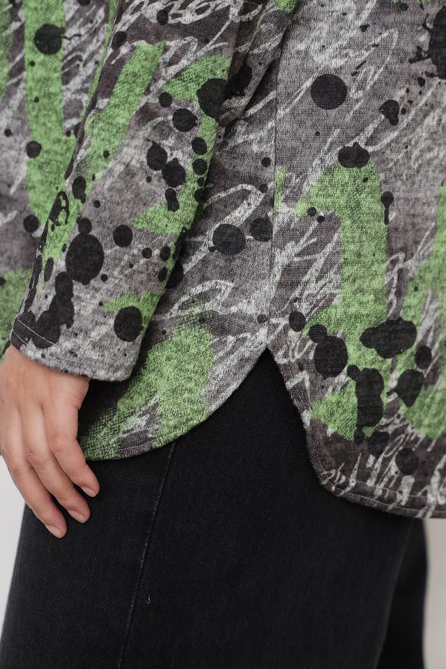 Этот стильный пуловер от бренда Doris Streich станет отличным дополнением к вашему образу. Пуловер выполнен в зеленой цветовой гамме с ярким абстрактным принтом, который придает ему индивидуальность.