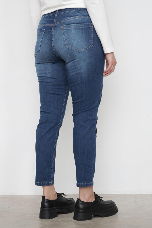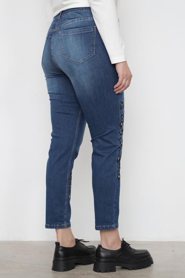 Представляем вашему вниманию стильные джинсы от бренда Doris Streich. Эта модель выполнена в классическом синем цвете и отличается оригинальным дизайном благодаря декоративным элементам с леопардовым принтом, расположенным по бокам брюк.